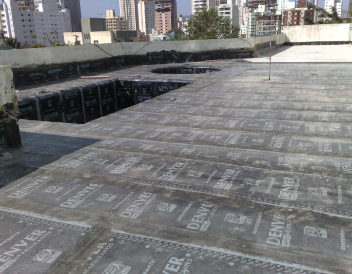 Cliente: Ed. Krewinkel – Bal. Camboriú Obra: Laje sobre a garagem Serviço: Impermeabilização Material: Denvermanta 4mm Área: 1.600 m²